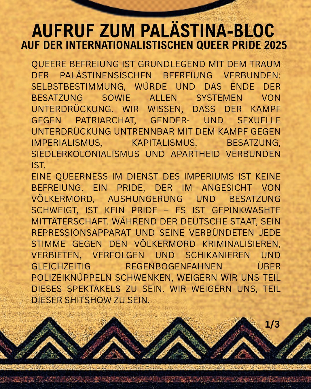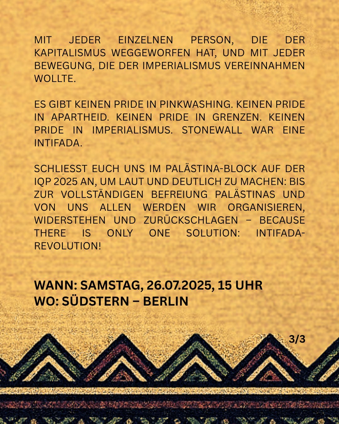 IQPB / Pinkwashing / LGBTQIA+ AUFRUF ZUM PALÄSTINA-BLOC AUF DER INTERNATIONALISTISCHEN QUEER PRIDE 2025 21. Juli 2025