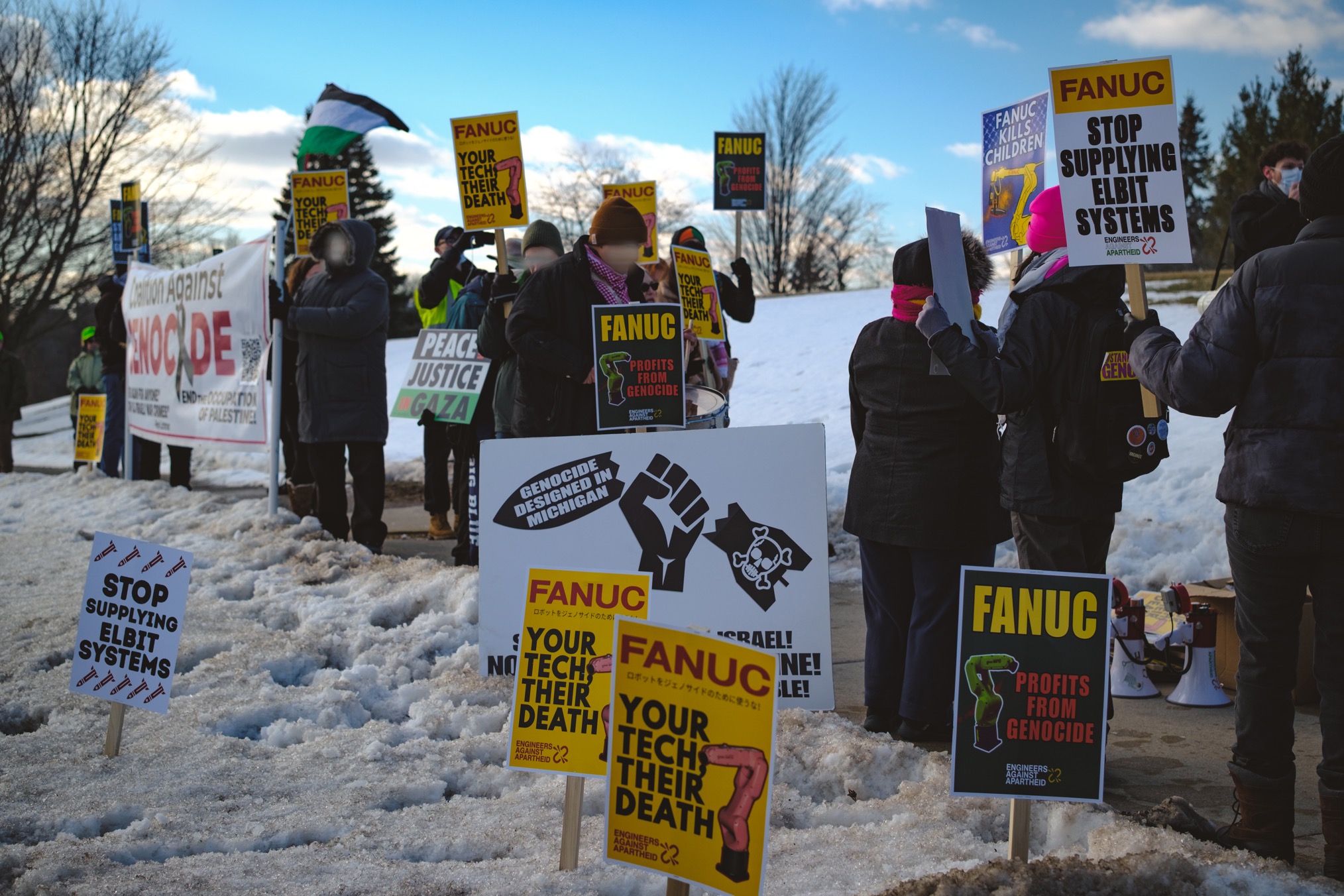Der von ZENKO (Japan) koordinierte Protest richtete sich gegen die Rolle von FANUC bei Israels anhaltendem Völkermord und seinem Apartheidregime gegen Palästinenser*innen.