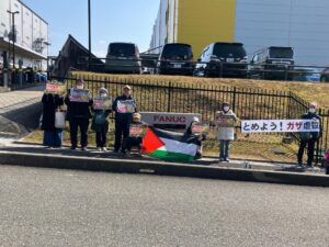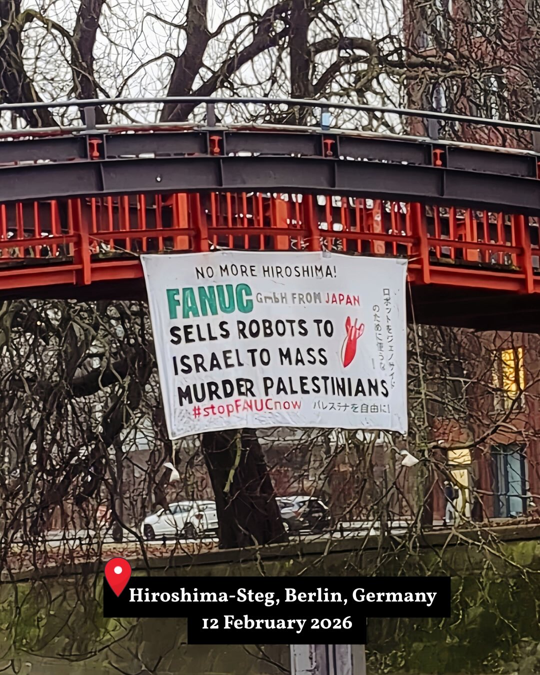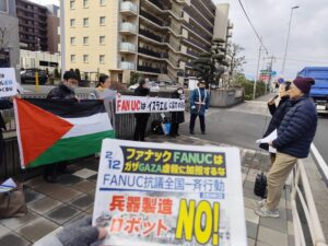 Die von ZENKO (Japan) koordinierte Aktion protestierte gegen die Rolle von FANUC bei Israels anhaltendem Völkermord und seinem Apartheidregime gegen Palästinenser*innen.