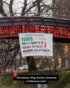 Die BDS-Bewegung begrüßt diese Aktivist*innen und fordert weiterhin weltweiten öffentlichen Druck auf FANUC, die Roboterlieferungen an Elbit einzustellen und damit die Mittäterschaft am Völkermord zu beenden.