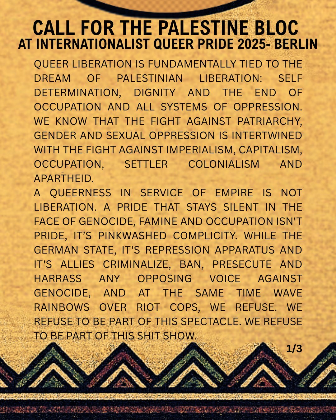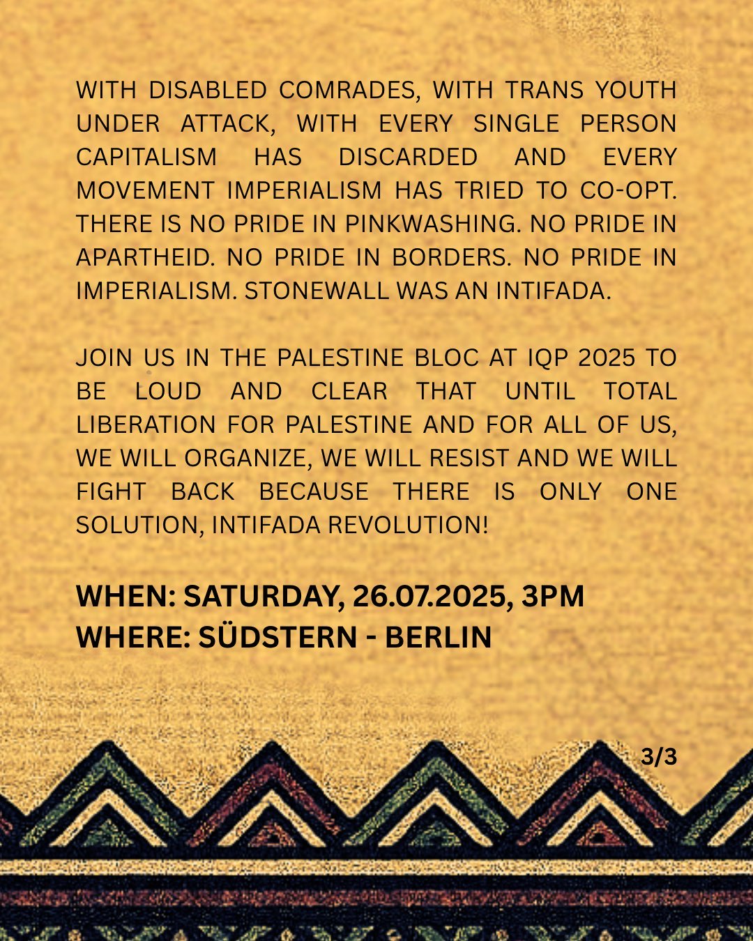 IQPB / Pinkwashing / LGBTQIA+ AUFRUF ZUM PALÄSTINA-BLOC AUF DER INTERNATIONALISTISCHEN QUEER PRIDE 2025 21. Juli 2025