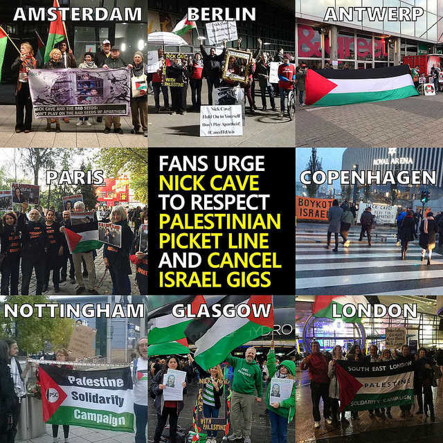 When Nick Cave & The Bad Seeds were in Nottingham on 28 September Nick Cave was called to cancel their apartheid Israel gigs